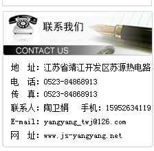 地 址:江蘇省靖江開發(fā)區蘇源熱電路 電 話:0523-84868913 傳 真:0523-84868913 E-mail:yangyang_twj@126.com
